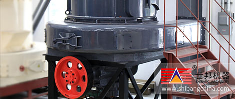 主機工作過(guo)(guo)(guo)程(cheng)是電動機通(tong)過(guo)(guo)(guo)一(yi)副(fu)三角帶輪帶動橫向傳(chuan)(chuan)動軸轉(zhuan)(zhuan)動,橫向傳(chuan)(chuan)動軸再通(tong)過(guo)(guo)(guo)另(ling)一(yi)端(duan)(duan)(duan)的(de)(de)錐(zhui)齒輪帶動主機主軸,主軸的(de)(de)上端(duan)(duan)(duan)連接著(zhu)磨(mo)輥(gun)(gun)(gun)吊(diao)(diao)架(jia)(jia),磨(mo)輥(gun)(gun)(gun)裝(zhuang)(zhuang)(zhuang)置通(tong)過(guo)(guo)(guo)橫擔軸吊(diao)(diao)裝(zhuang)(zhuang)(zhuang)在磨(mo)輥(gun)(gun)(gun)吊(diao)(diao)架(jia)(jia)上并形成擺動支(zhi)點,其不僅圍繞軸回轉(zhuan)(zhuan),同時(shi)在離心力(li)的(de)(de)作用(yong)下磨(mo)輥(gun)(gun)(gun)沿著(zhu)磨(mo)環(huan)內(nei)圓滾動,磨(mo)輥(gun)(gun)(gun)本身因摩擦作用(yong)而(er)(er)自轉(zhuan)(zhuan)。磨(mo)輥(gun)(gun)(gun)吊(diao)(diao)架(jia)(jia)下端(duan)(duan)(duan)裝(zhuang)(zhuang)(zhuang)有鏟刀(dao)架(jia)(jia),鏟刀(dao)架(jia)(jia)的(de)(de)下法蘭上裝(zhuang)(zhuang)(zhuang)有傾斜的(de)(de)鏟刀(dao),鏟刀(dao)的(de)(de)前端(duan)(duan)(duan)接近磨(mo)室襯板(ban),后端(duan)(duan)(duan)位于(yu)磨(mo)輥(gun)(gun)(gun)與磨(mo)環(huan)形成的(de)(de)楔形間隙內(nei),鏟刀(dao)與磨(mo)輥(gun)(gun)(gun)同轉(zhuan)(zhuan)過(guo)(guo)(guo)程(cheng)中把物料(liao)鏟拋喂入磨(mo)輥(gun)(gun)(gun)磨(mo)環(huan)之(zhi)間而(er)(er)被擠壓、碾(nian)碎。從磨(mo)環(huan)底部進入磨(mo)腔的(de)(de)氣流將(jiang)小顆粒粉(fen)料(liao)帶入選粉(fen)機,由此而(er)(er)達(da)到制(zhi)粉(fen)目(mu)的(de)(de)。